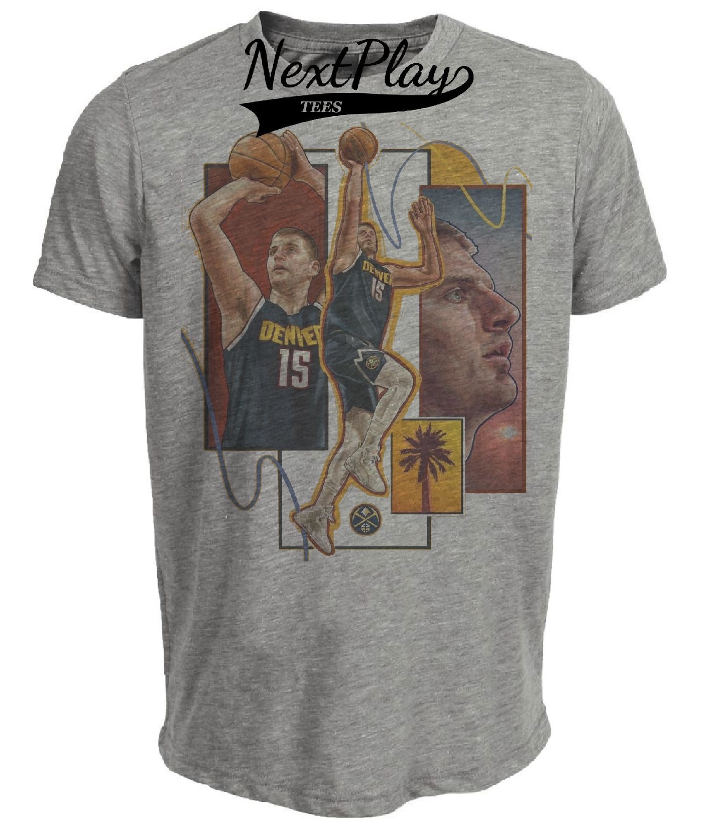 Denver Nuggets Nikola Jokić Exclusive Retro Basketball Artwork Heather Gray Sublimated T-Shirt