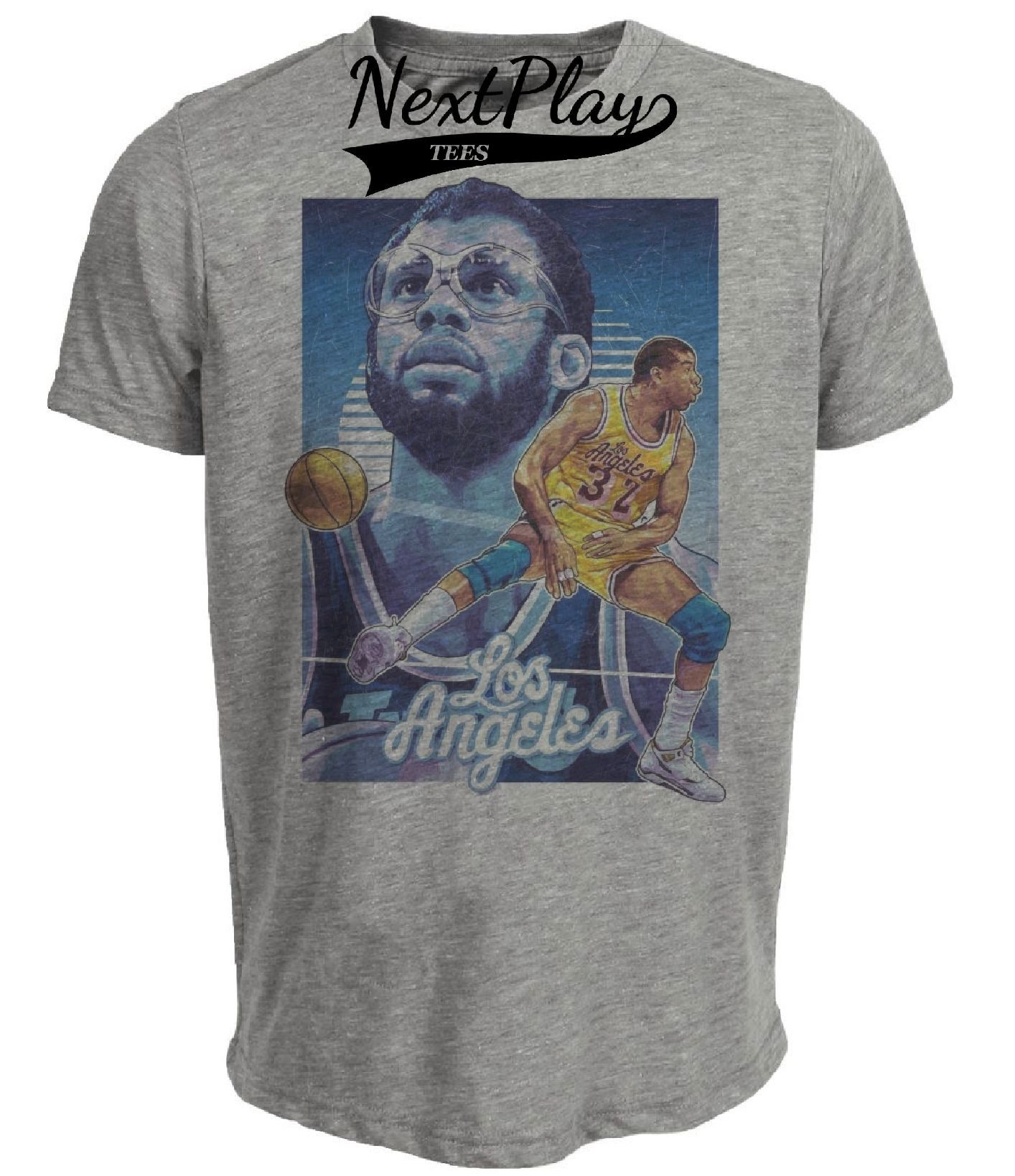Los Angeles Lakers Legends Magic Kareem Exclusive Retro Basketball Artwork Heather Gray Sublimated T-Shirt