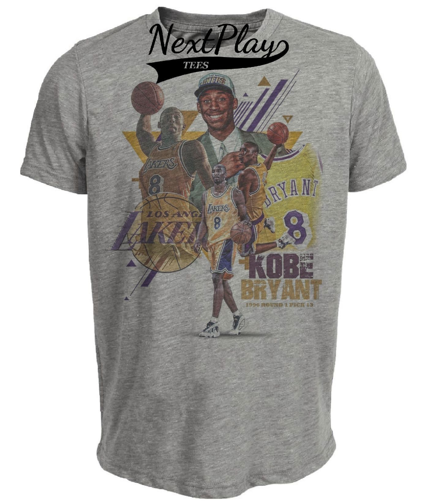 Los Angeles Lakers Kobe Bryant Exclusive Retro RC Basketball 1996 Artwork Heather Gray Sublimated T-Shirt