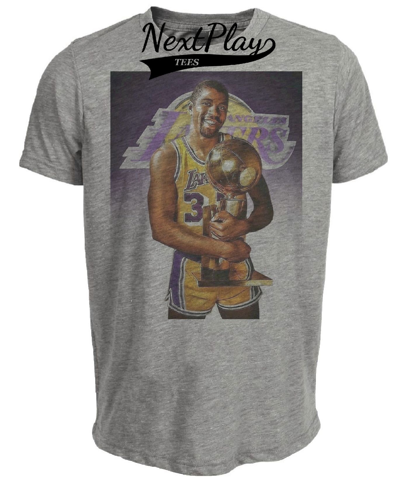 Los Angeles Lakers Magic Johnson Champs Exclusive Retro Basketball Artwork Heather Gray Sublimated T-Shirt