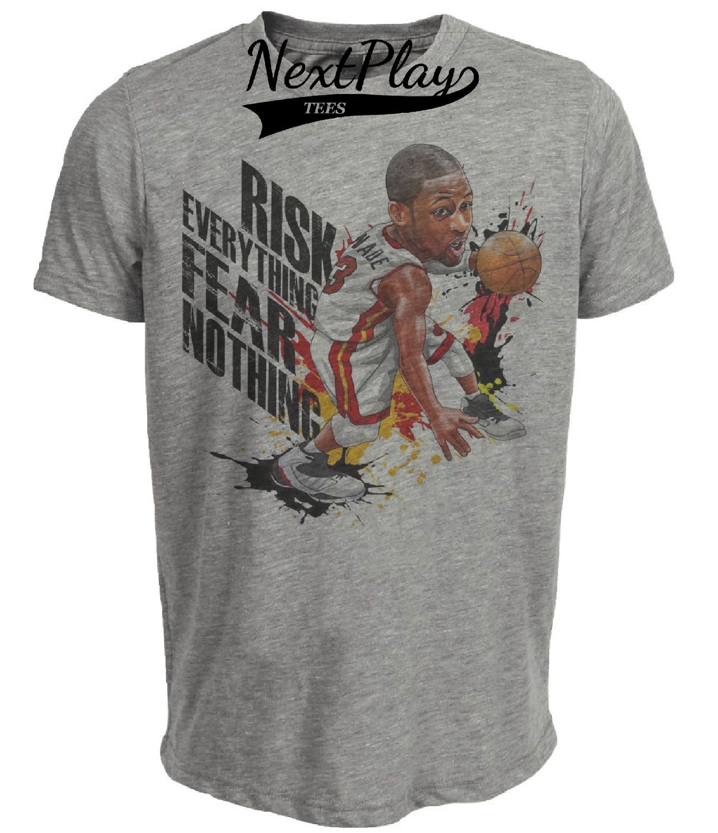 Miami Heat Dwyane Wade Fear Nothing Exclusive Retro Basketball Artwork Heather Gray Sublimated T-Shirt