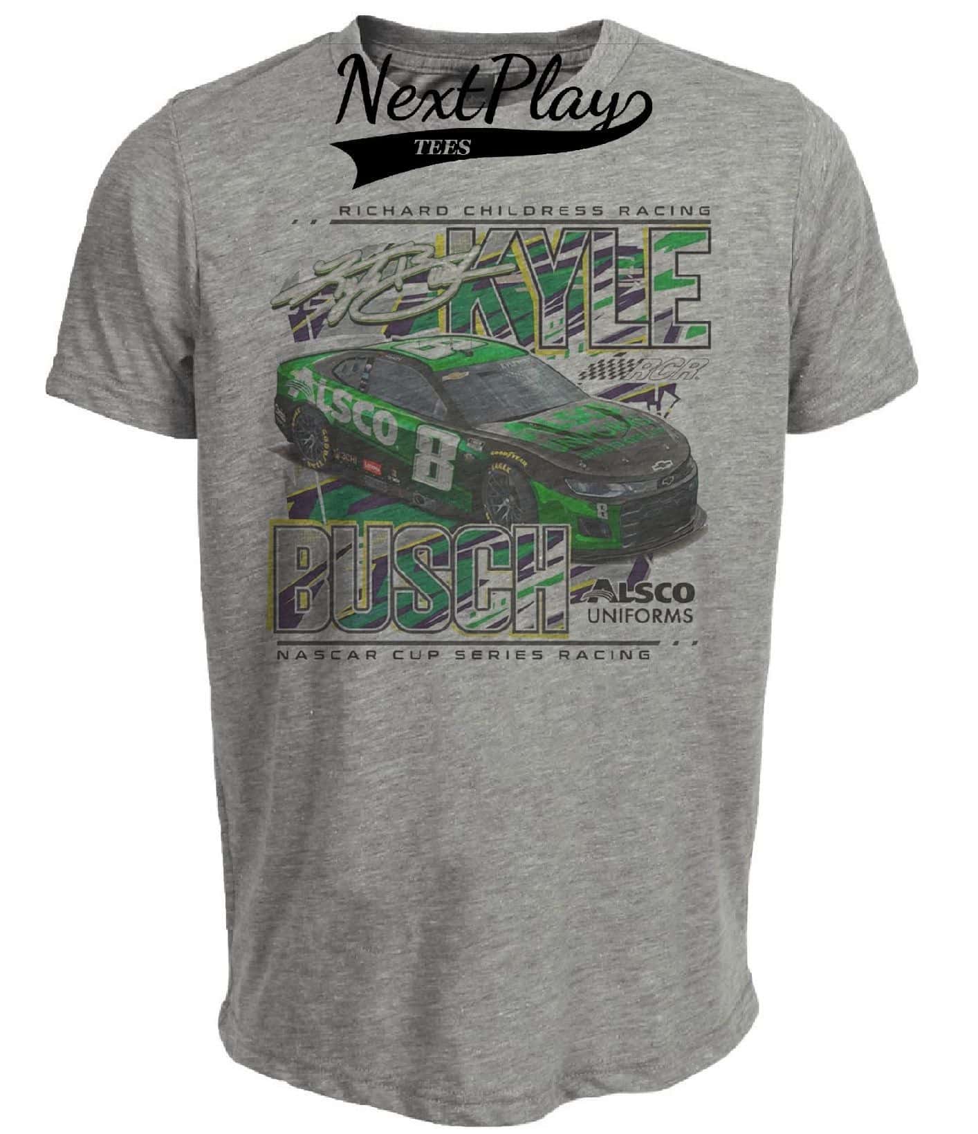 Kyle Busch Exclusive Retro Racing Green Artwork Heather Gray Sublimated T-Shirt