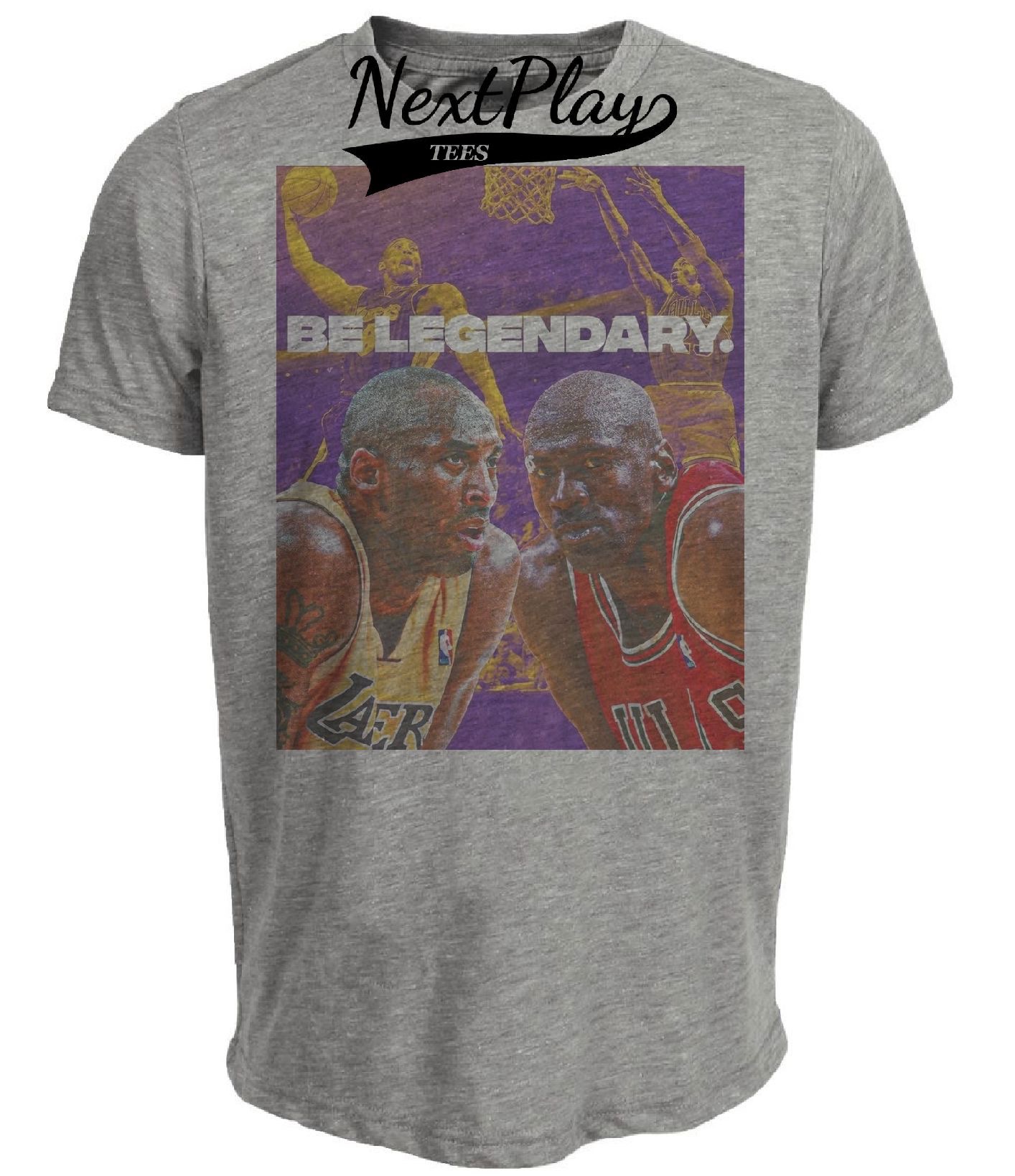Chicago Bulls Los Angeles Lakers Be Legendary Jordan Kobe Exclusive Retro Basketball Artwork Heather Gray Sublimated T-Shirt