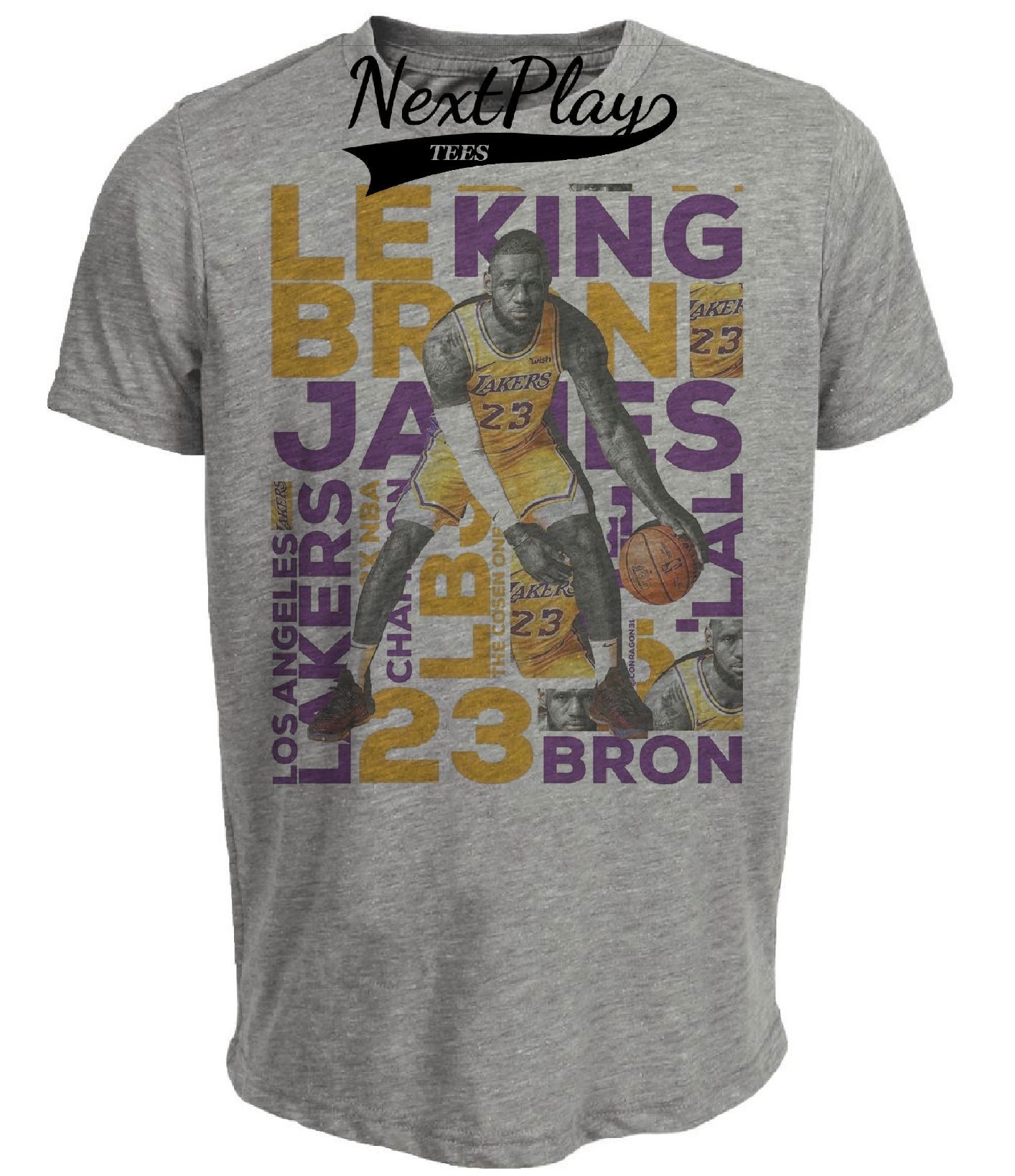 Los Angeles Lakers LeBron King James #23 Exclusive Retro Basketball Artwork Heather Gray Sublimated T-Shirt