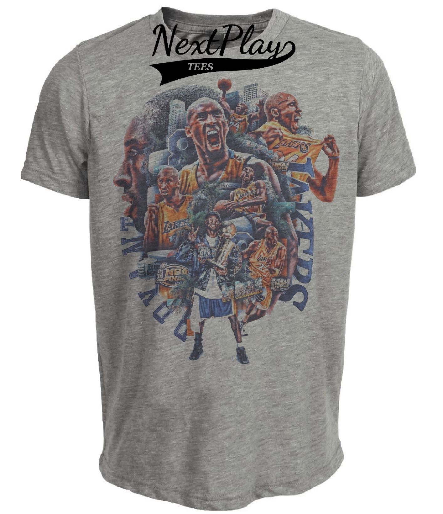 Los Angeles Lakers Kobe Bryant Era Exclusive Retro Basketball Artwork Heather Gray Sublimated T-Shirt