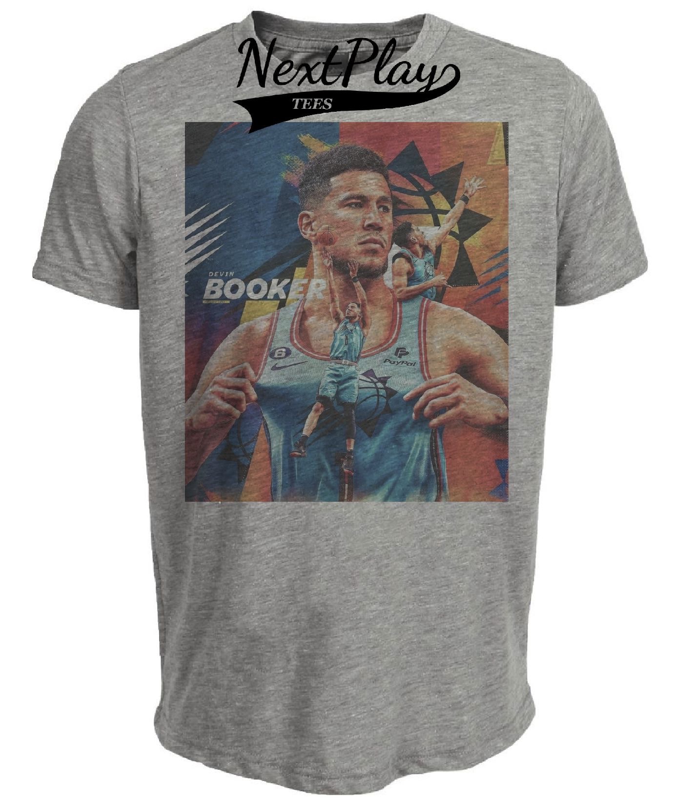 Phoenix Suns Devin Booker Exclusive Retro Basketball Artwork Heather Gray Sublimated T-Shirt