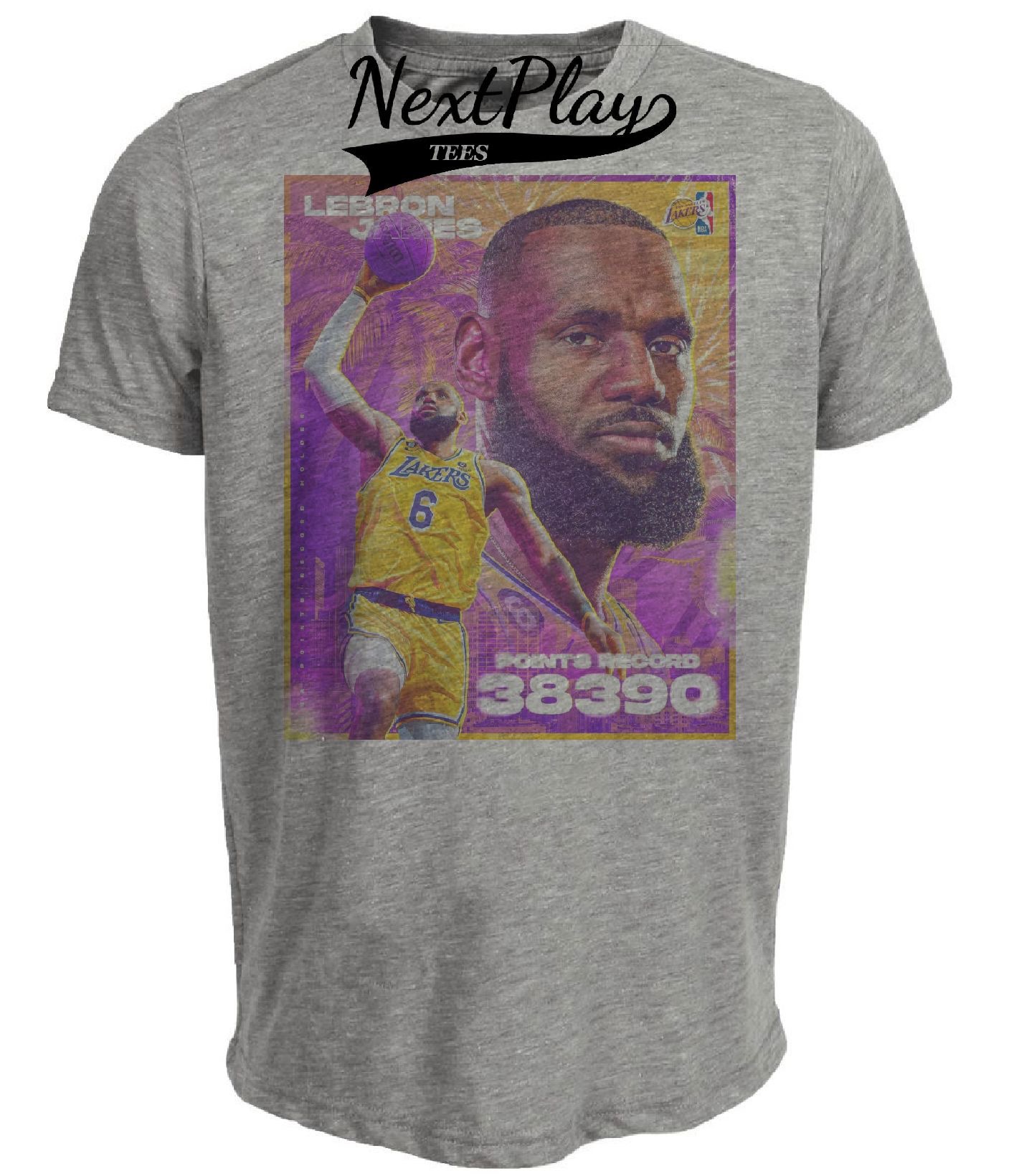 Los Angeles Lakers LeBron James All-Time Scoring Record Exclusive Retro Basketball Artwork Heather Gray Sublimated T-Shirt