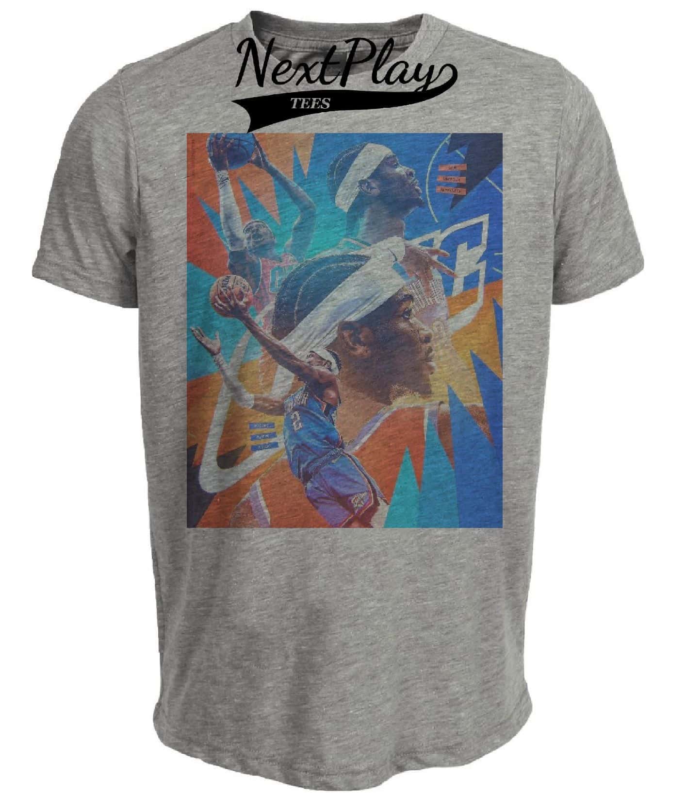 Oklahoma City Thunder PG Shai Gilgeous-Alexander Exclusive Retro Basketball Artwork Heather Gray Sublimated T-Shirt