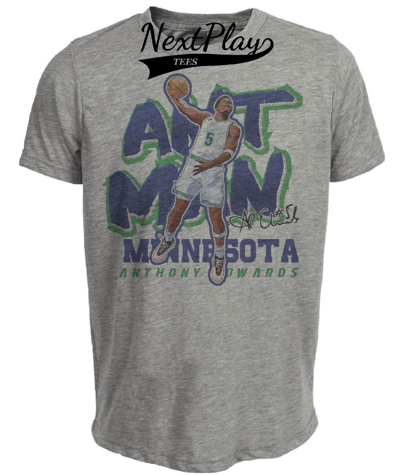 Minnesota Timberwolves Anthony Edwards Ant Man Exclusive Retro Basketball Artwork Heather Gray Sublimated T-Shirt