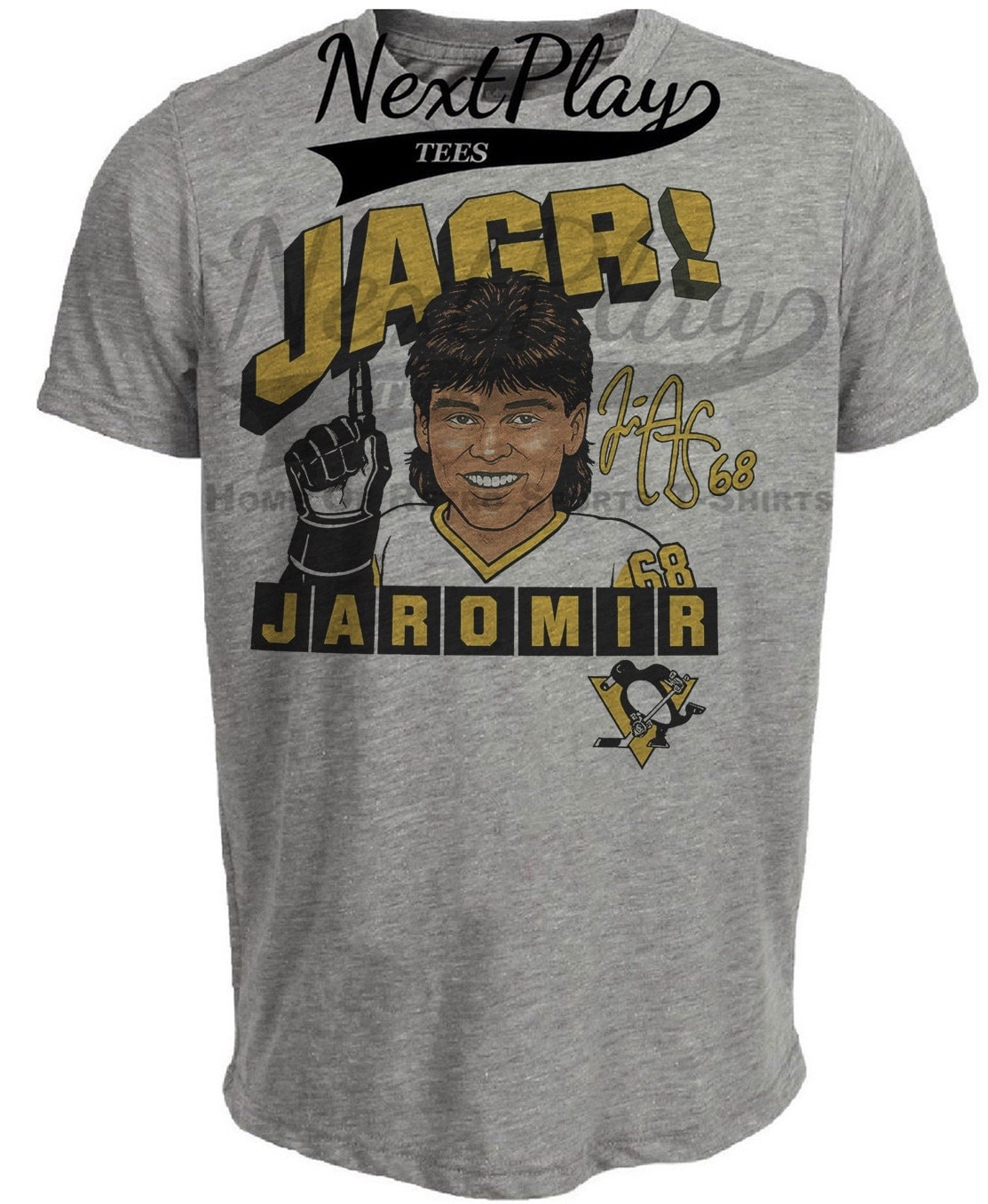 Pittsburgh Penguins Jaromir Jagr Retro Hockey 1990 Rookie Artwork Heather Gray Sublimated T-Shirt