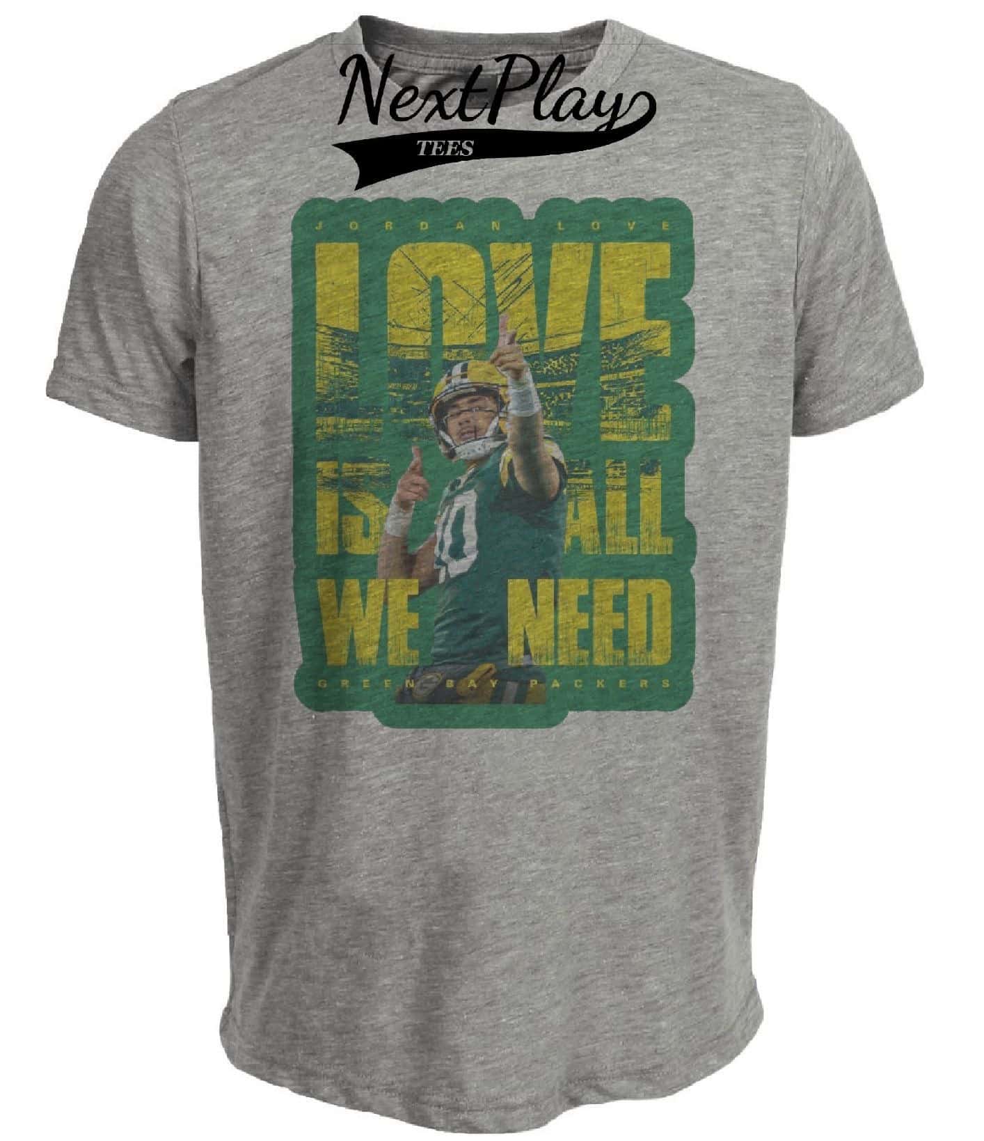 Green Bay Packers QB Jordan Love Exclusive Retro Football Artwork Heather Gray Sublimated T-Shirt