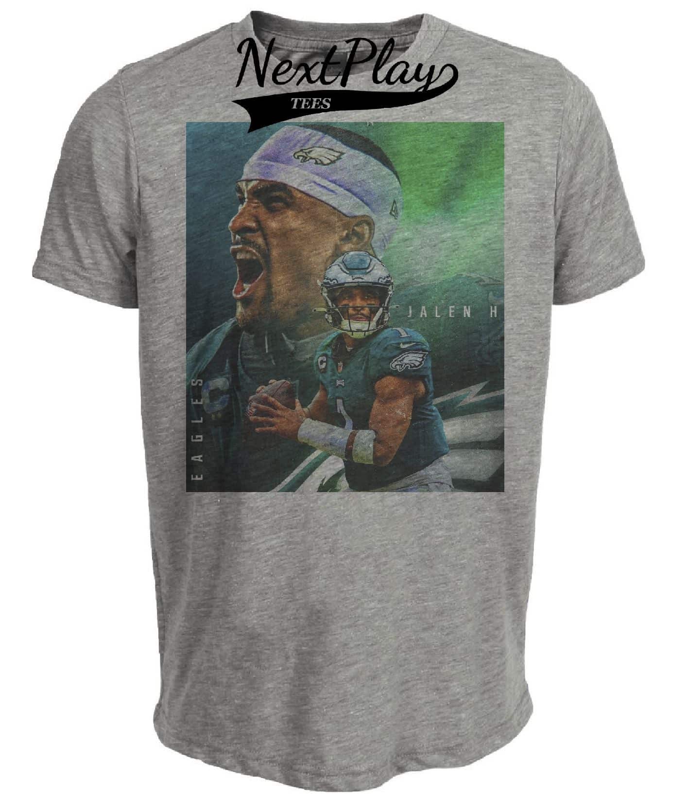 Philadelphia Eagles Jalen Hurts Exclusive Retro Football Artwork Heather Gray Sublimated T-Shirt