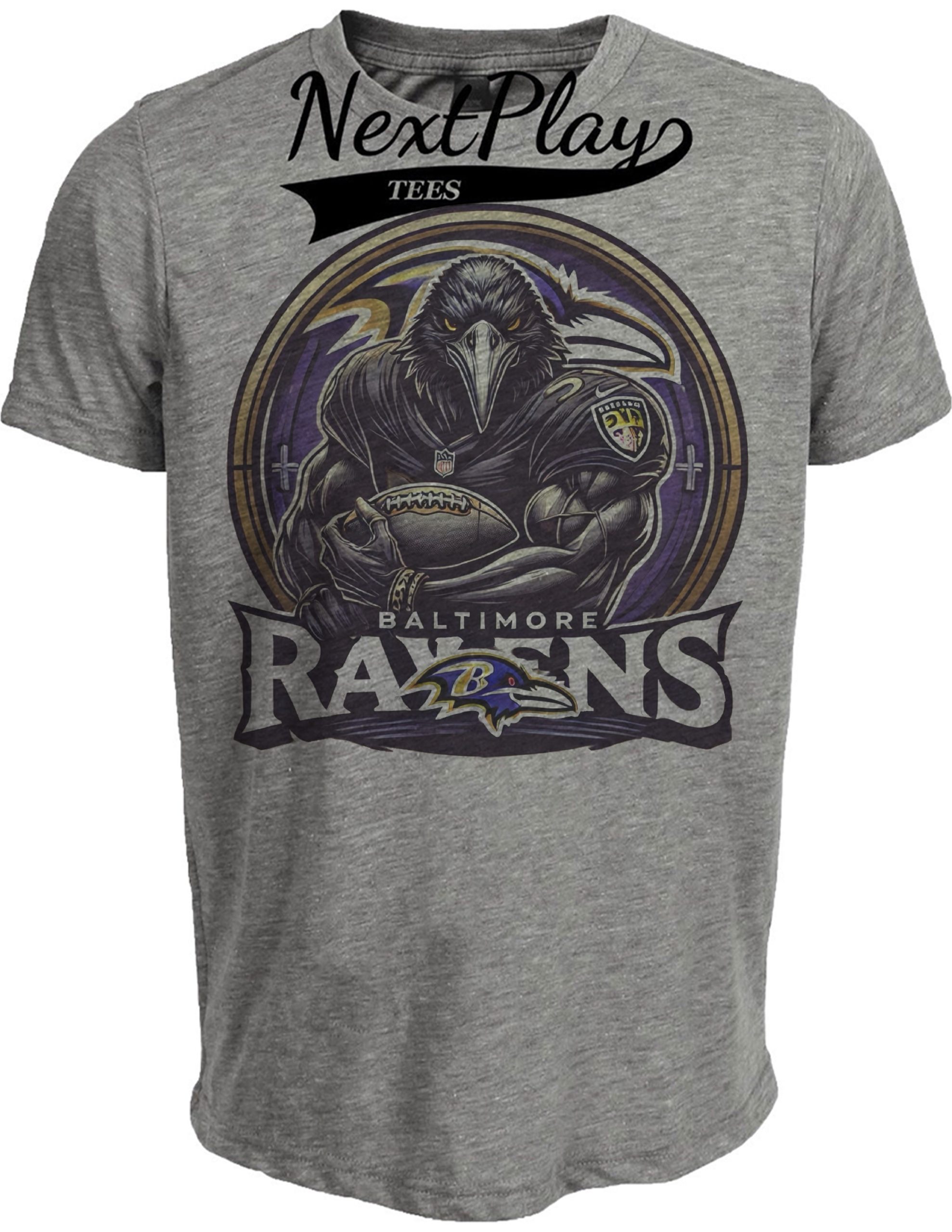 Baltimore Ravens Exclusive Retro Football Circle Artwork Heather Gray Sublimated T-Shirt