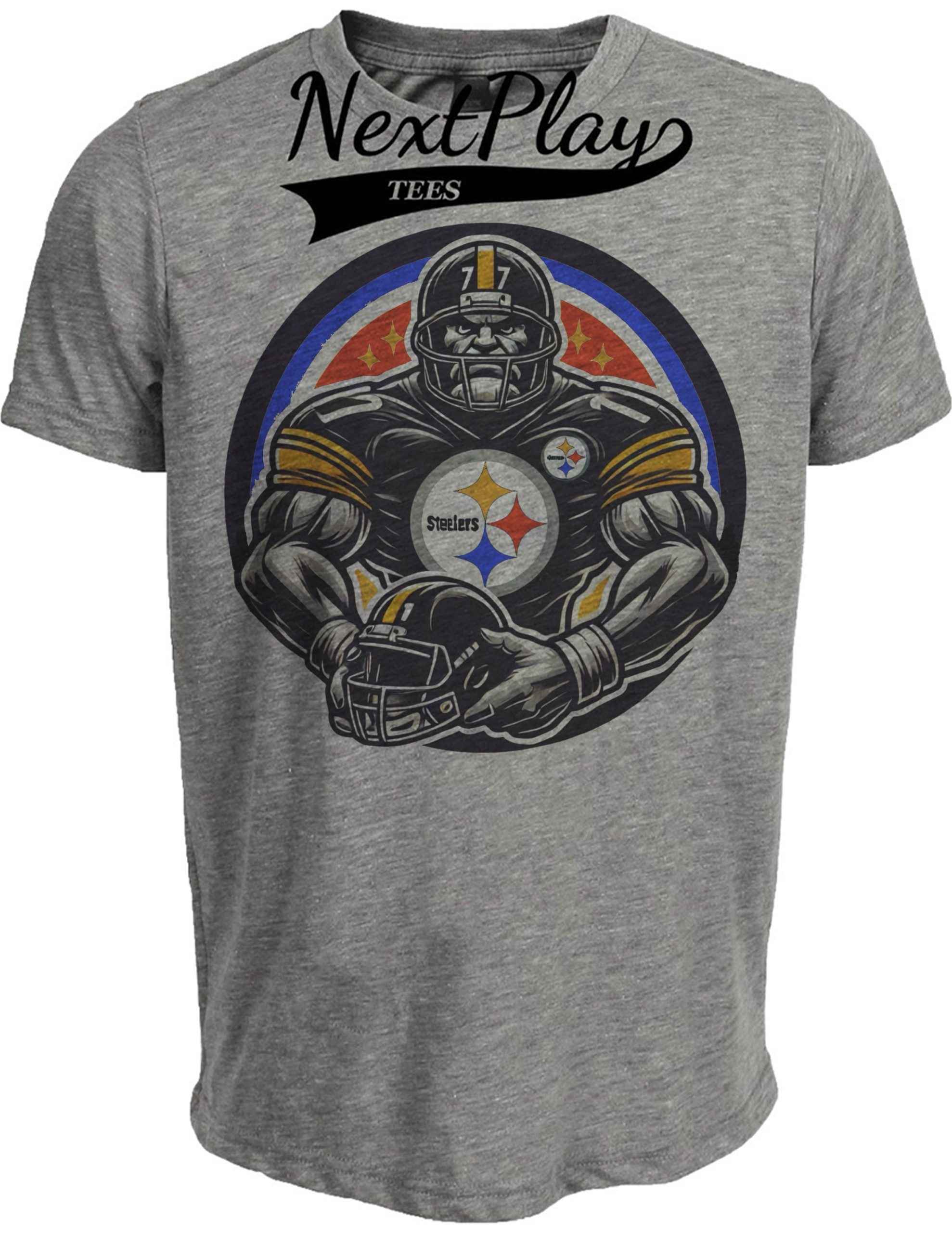 Pittsburgh Steelers Exclusive Retro Football Circle Artwork Heather Gray Sublimated T-Shirt