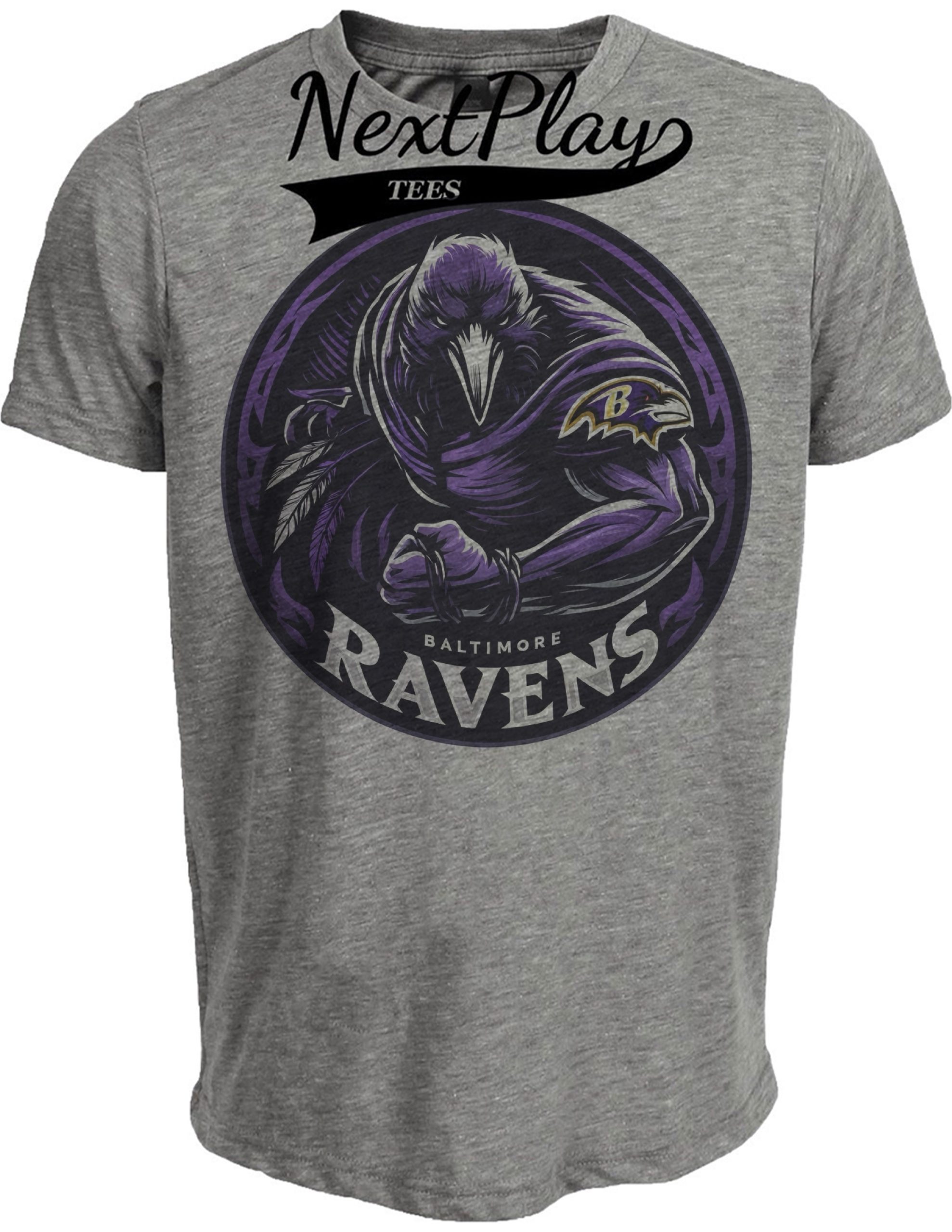 Baltimore Ravens Exclusive Retro Mascot Football Circle Artwork Heather Gray Sublimated T-Shirt
