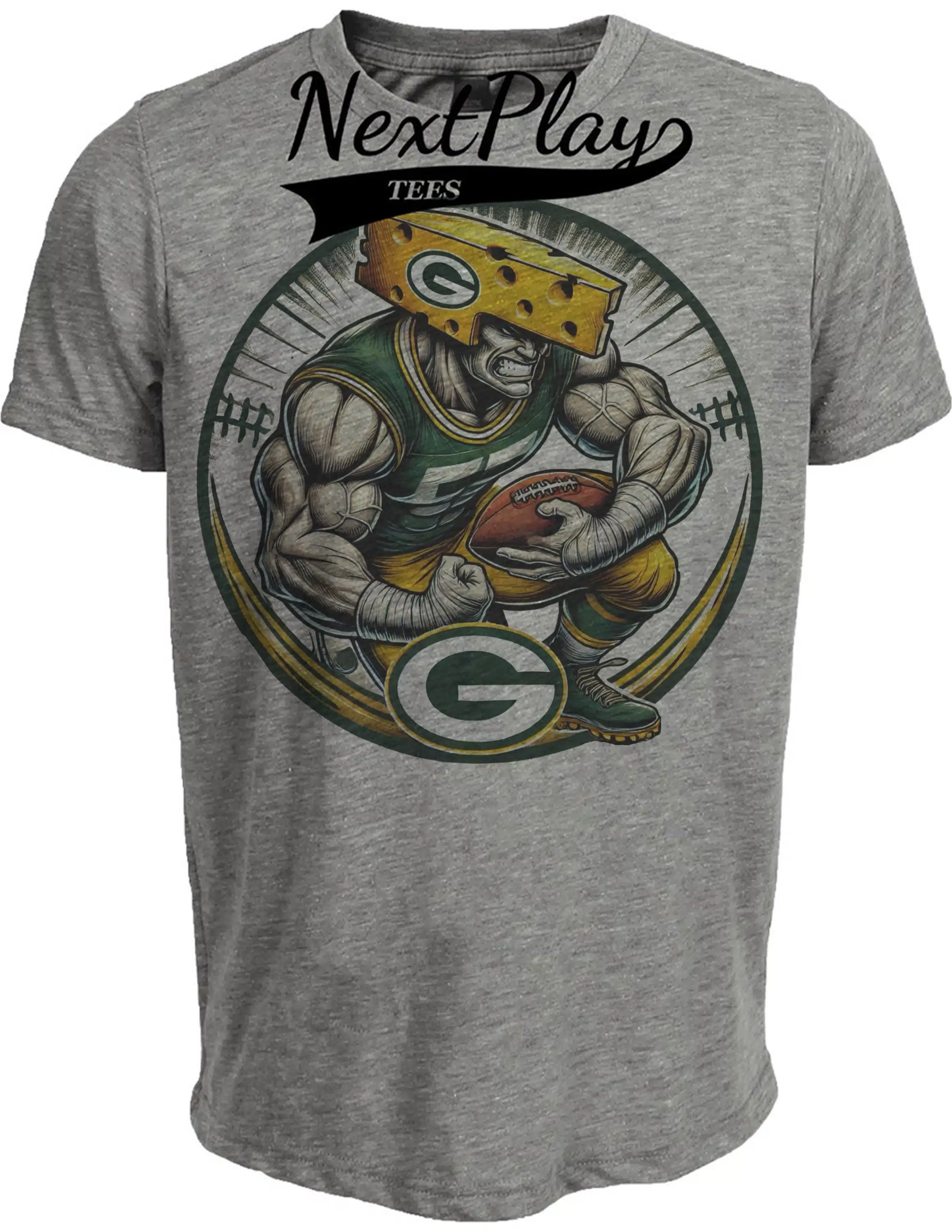 Green Bay Packers Exclusive Retro Football Circle Artwork Heather Gray Sublimated T-Shirt