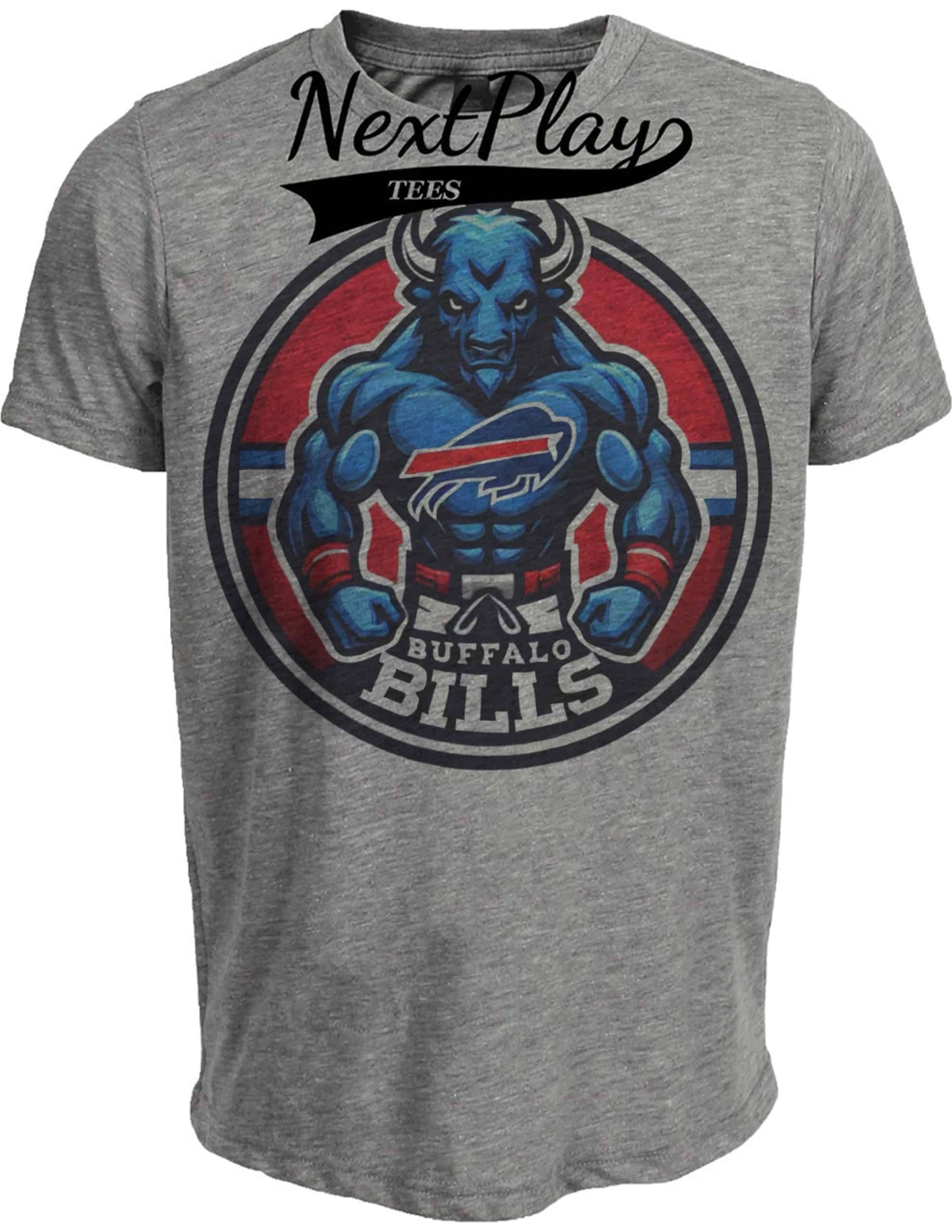Buffalo Bills Exclusive Retro Mascot Football Circle Artwork Heather Gray Sublimated T-Shirt