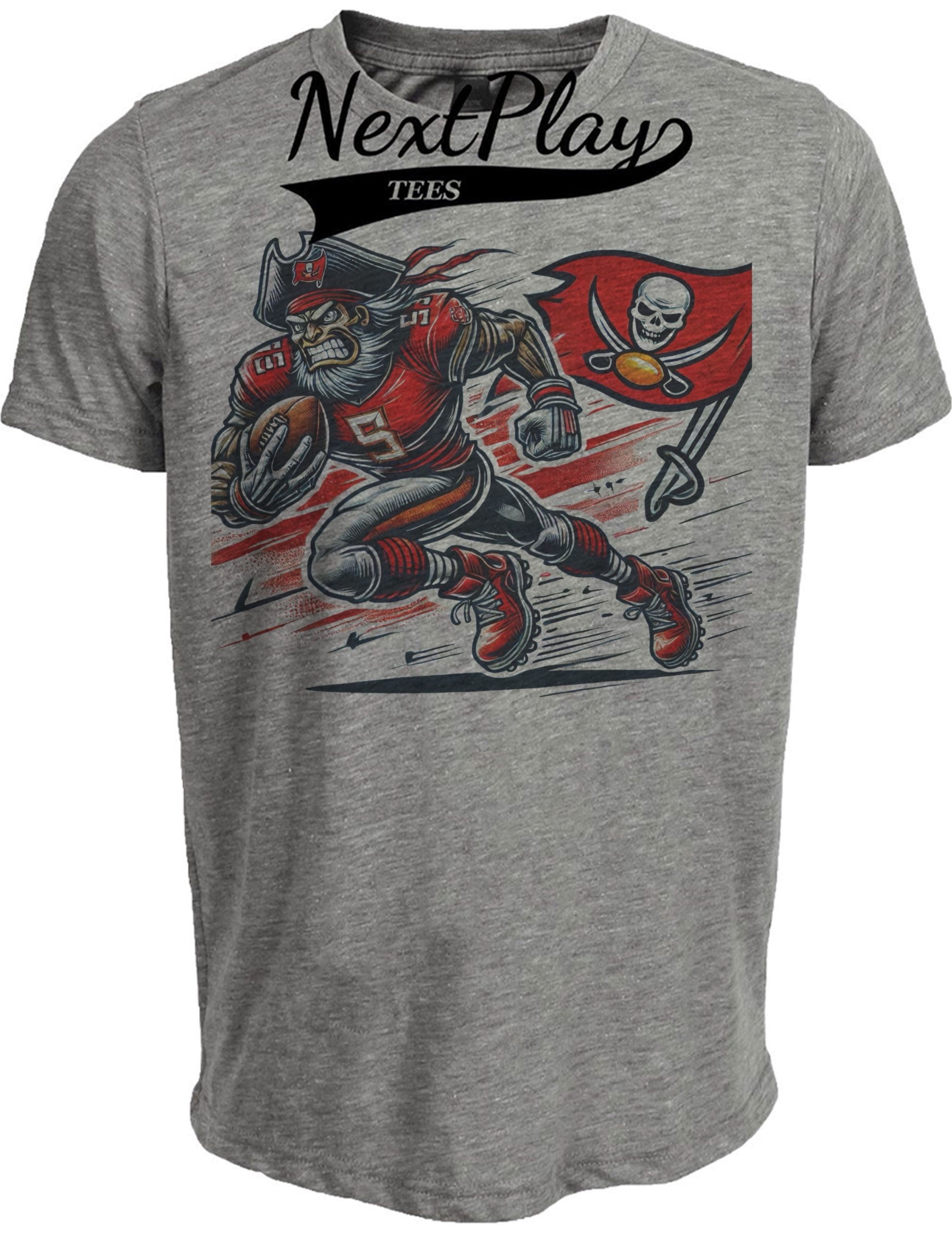 Tampa Bay Buccaneers Exclusive Retro Football Running Mascot Artwork Heather Gray Sublimated T-Shirt