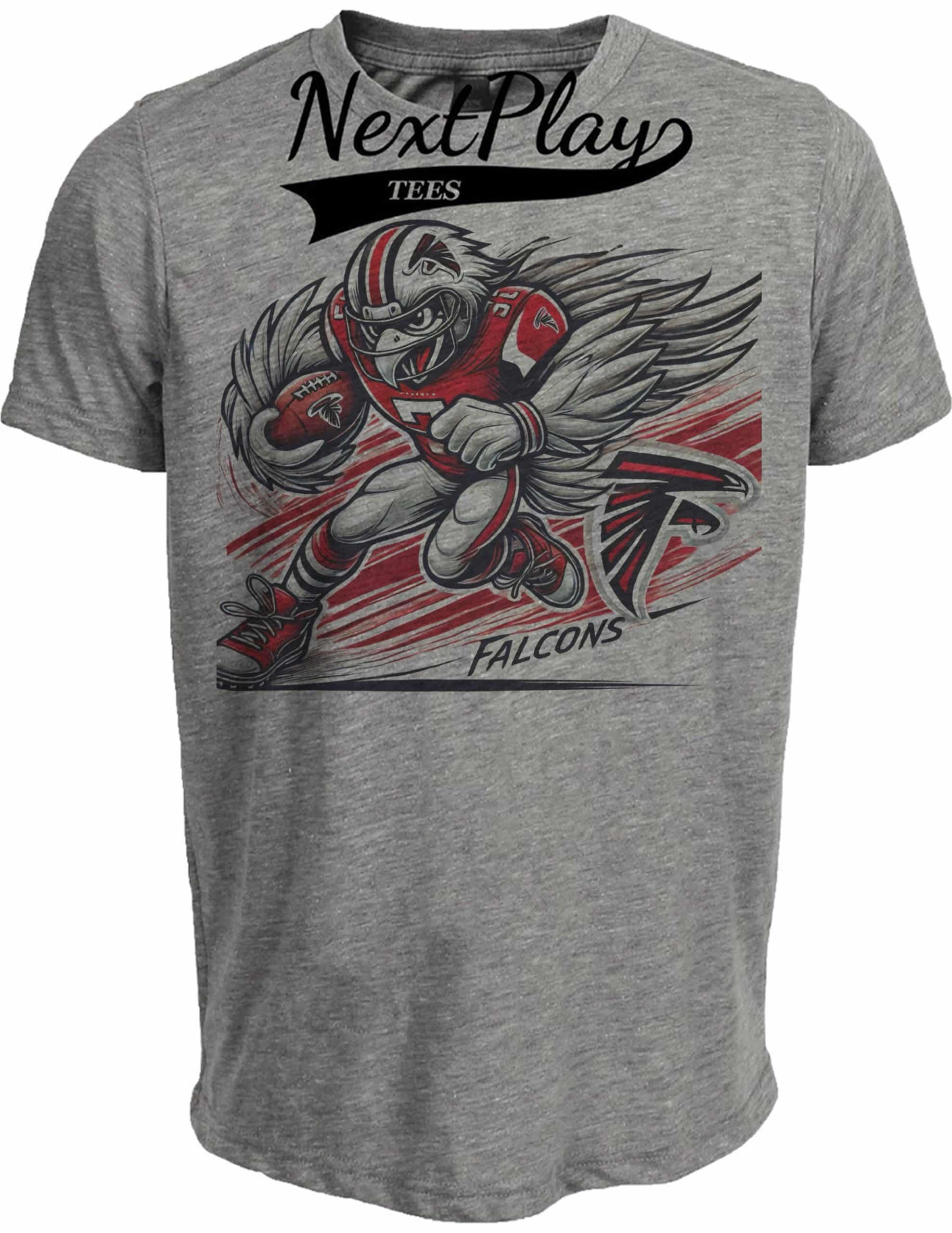 Atlanta Falcons Exclusive Retro Football Running Mascot Artwork Heather Gray Sublimated T-Shirt
