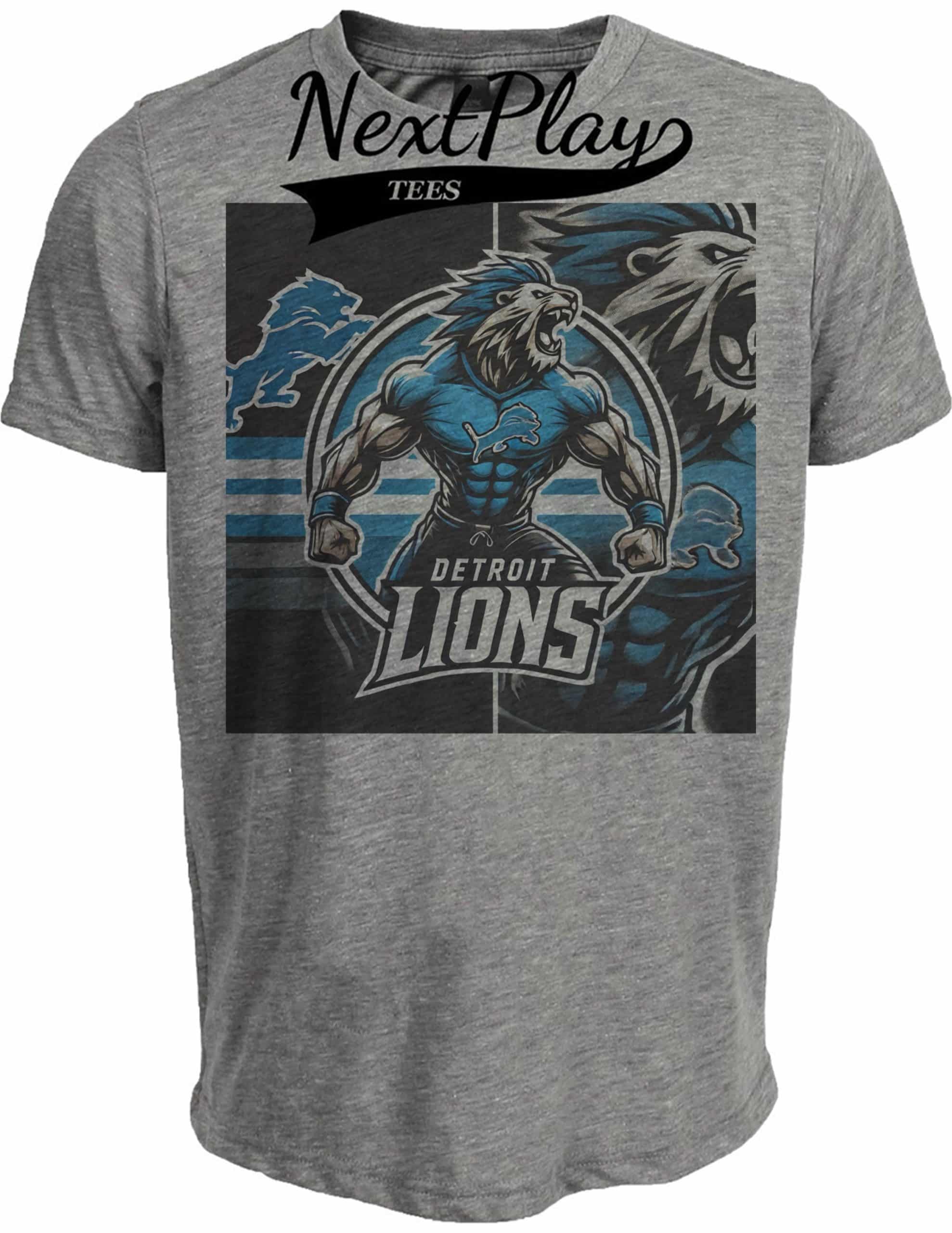 Detroit Lions Exclusive Retro Football Roaring Mascot Artwork Heather Gray Sublimated T-Shirt