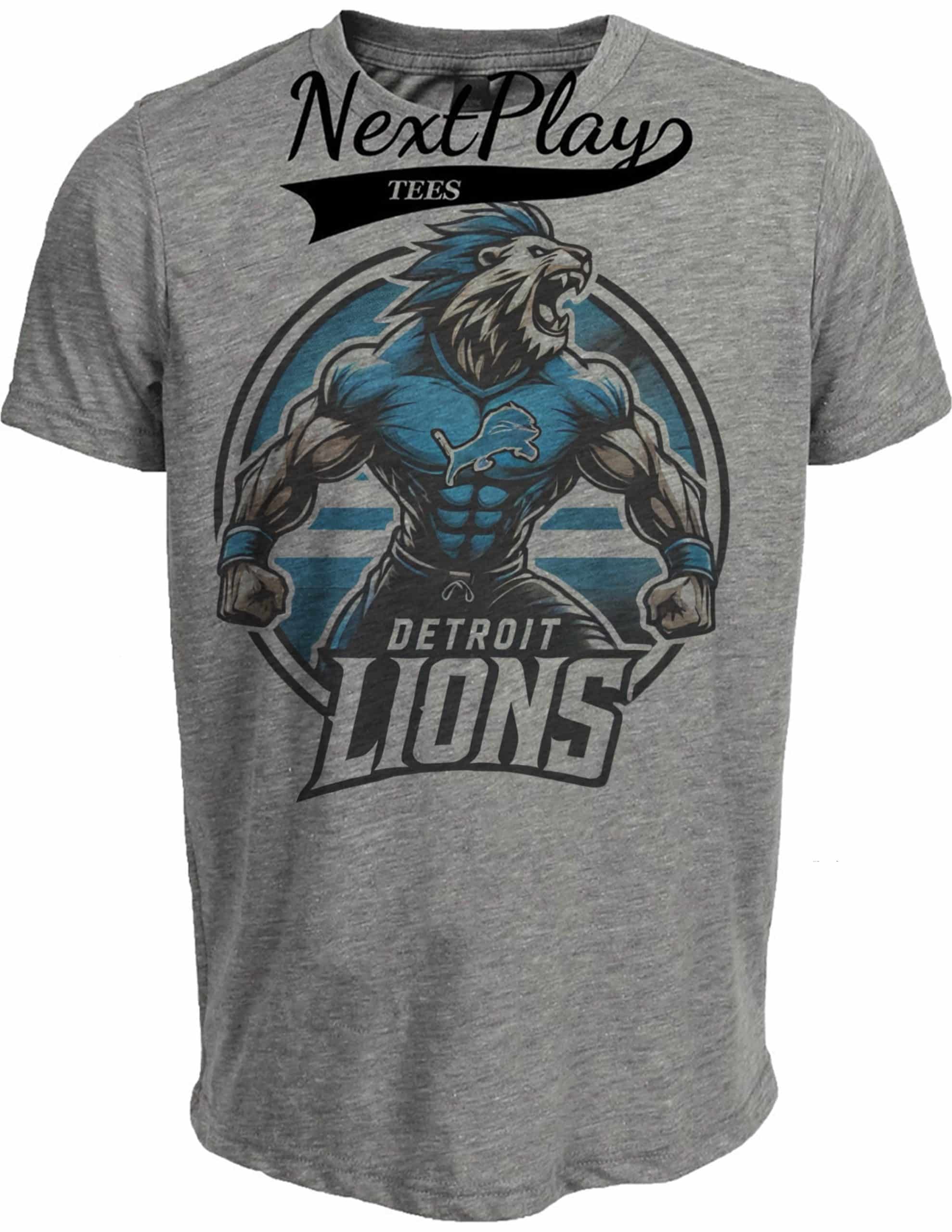 Detroit Lions Exclusive Retro Football Roaring Circle Artwork Heather Gray Sublimated T-Shirt
