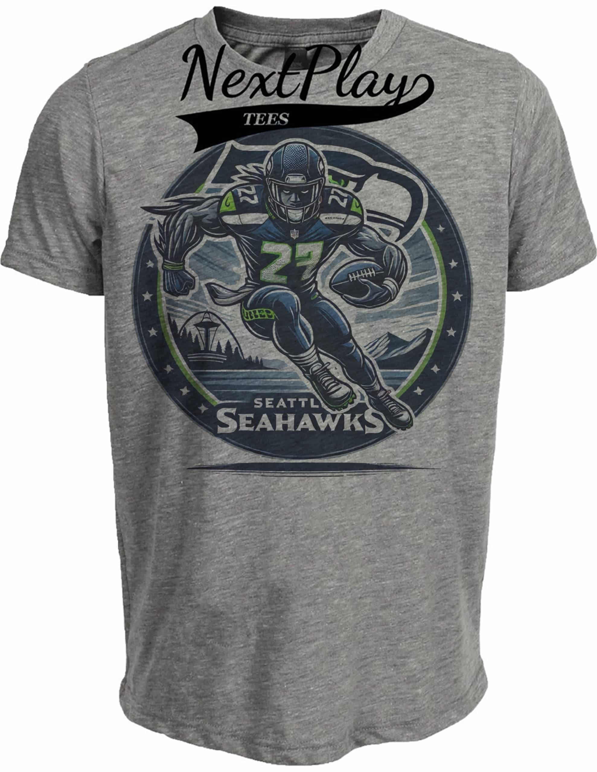 Seattle Seahawks Exclusive Retro Football Circle Artwork Heather Gray Sublimated T-Shirt