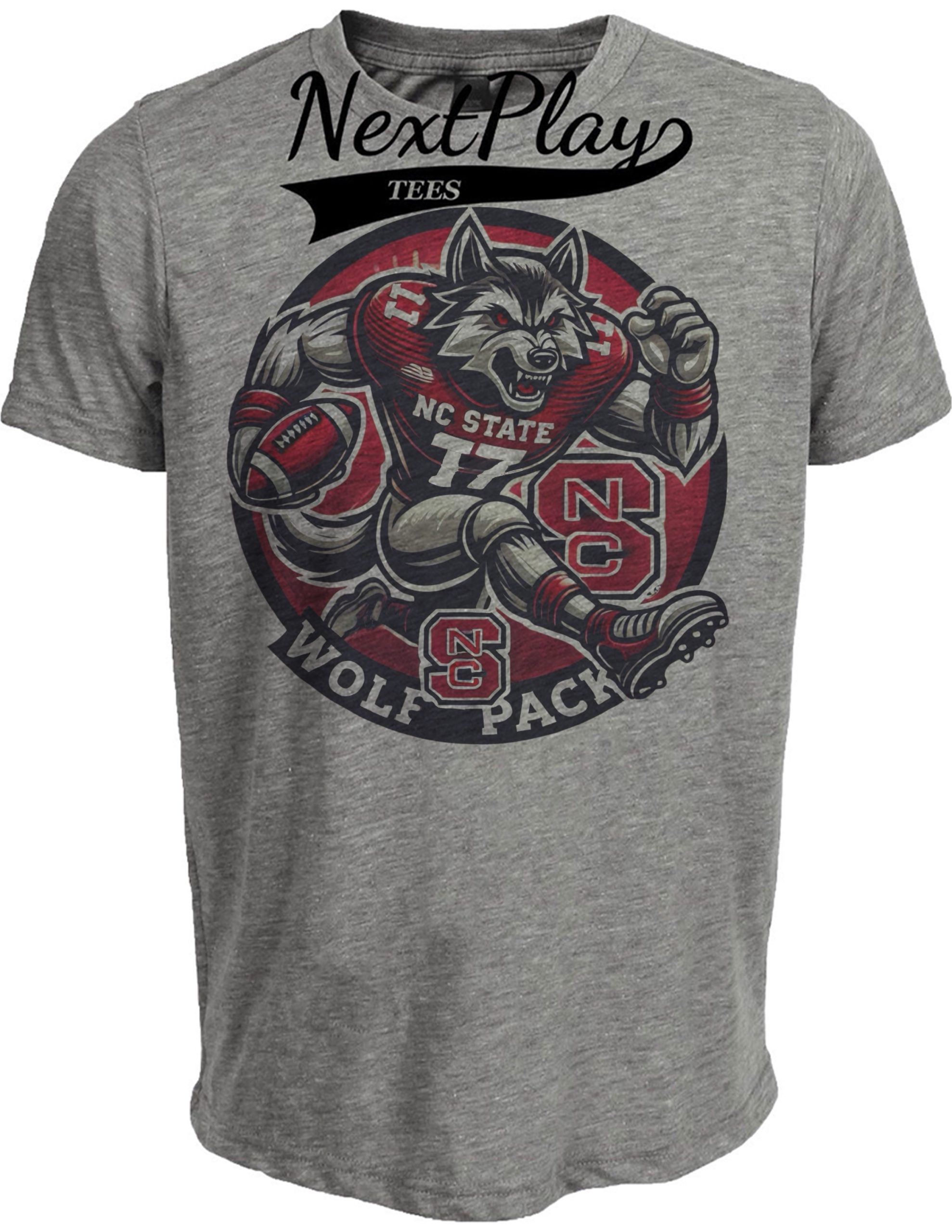 NC State Wolfpack Exclusive Retro Football Circle Artwork Heather Gray Sublimated T-Shirt