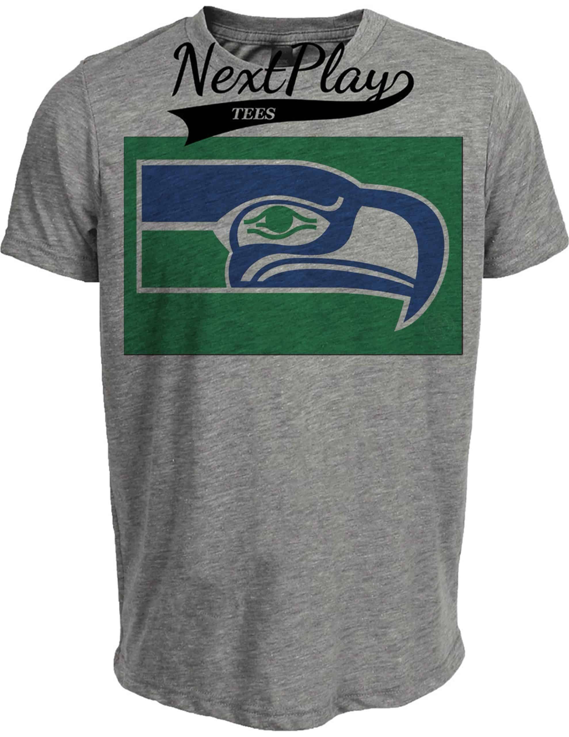 Seattle Seahawks Retro Football 1977 Artwork Heather Gray Sublimated T-Shirt