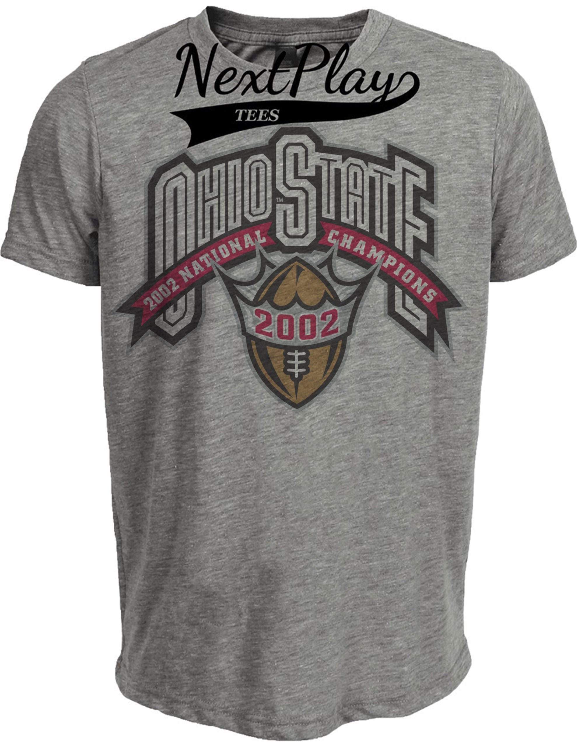 Ohio State Buckeyes Retro National Champions Football 2002 Artwork Heather Gray Sublimated T-Shirt