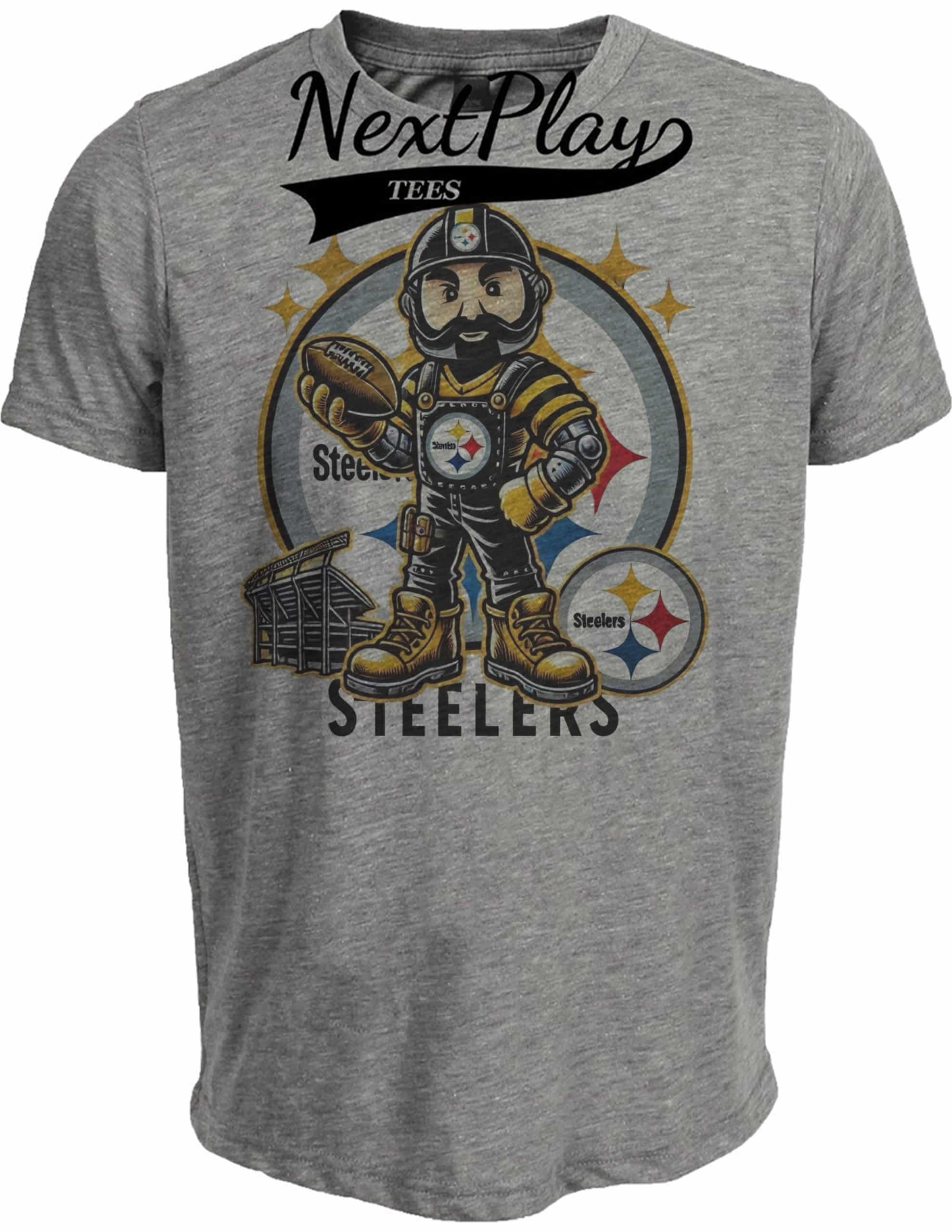 Pittsburgh Steelers Exclusive Retro Football Steely McBeam Artwork Heather Gray Sublimated T-Shirt
