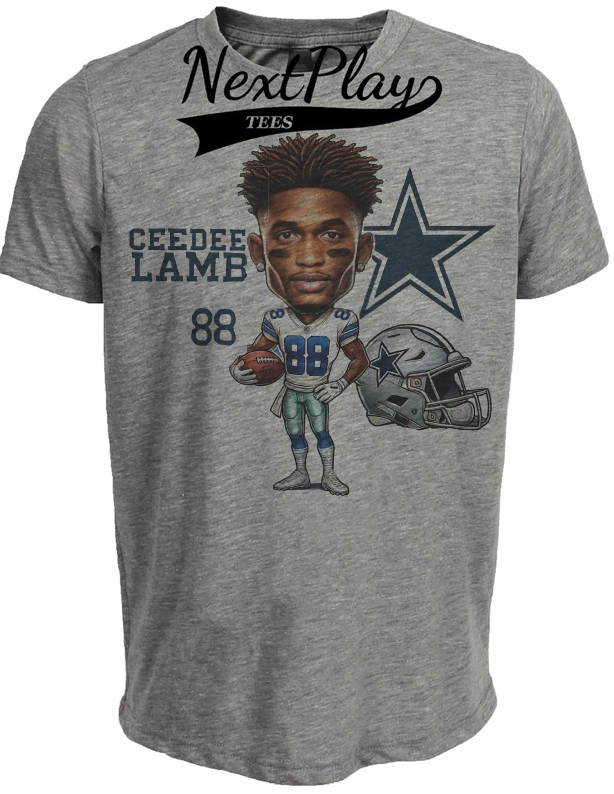Dallas Cowboys CeeDee Lamb WR Exclusive Retro Football Artwork Heather Gray Sublimated T-Shirt