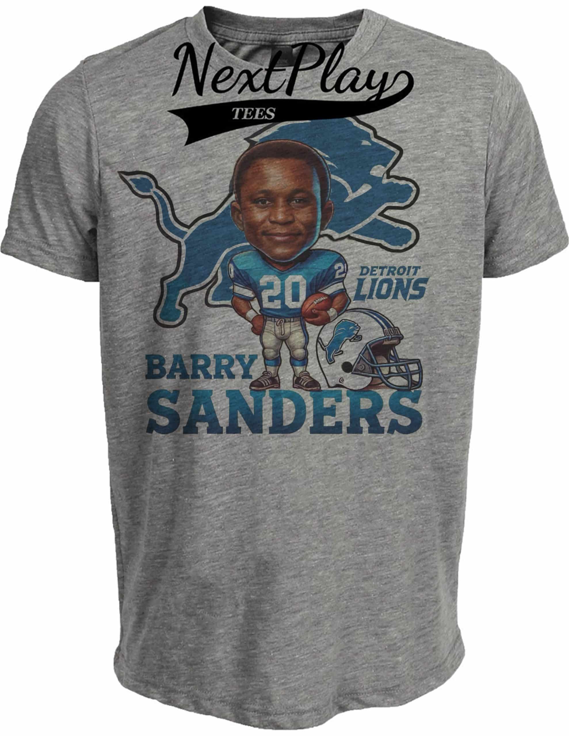Detroit Lions Barry Sanders RB Exclusive Retro Football 1993 Artwork Heather Gray Sublimated T-Shirt