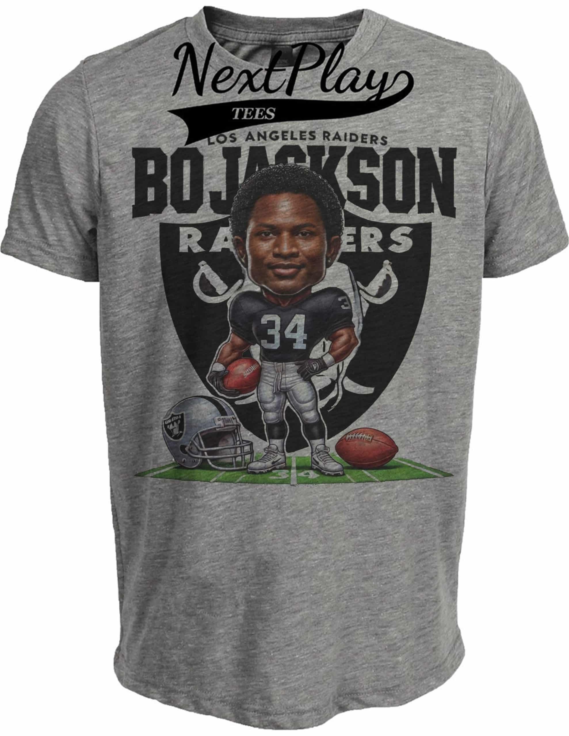 Los Angeles Raiders Bo Jackson Exclusive Retro Football 1987 Artwork Heather Gray Sublimated T-Shirt