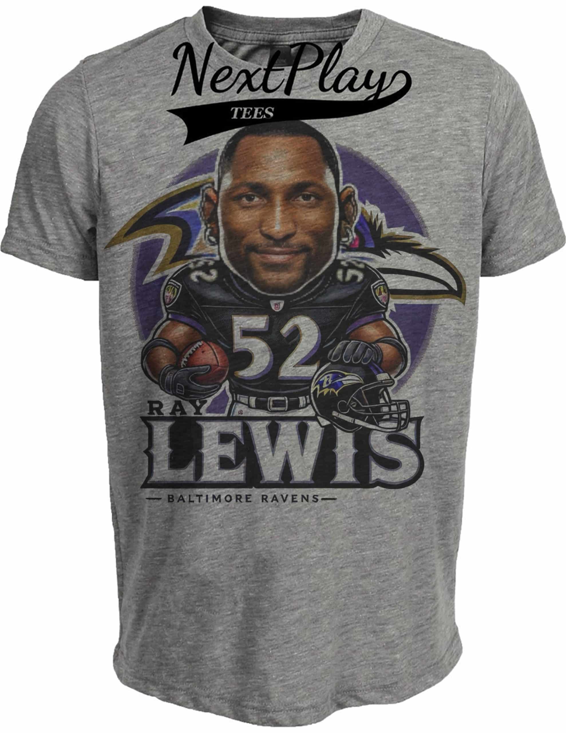 Baltimore Ravens Ray Lewis Exclusive Retro Football 1996 Artwork Heather Gray Sublimated T-Shirt