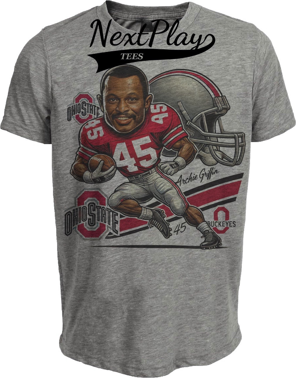Ohio State Buckeyes Archie Griffin Exclusive Retro Football 1974 Artwork Heather Gray Sublimated T-Shirt