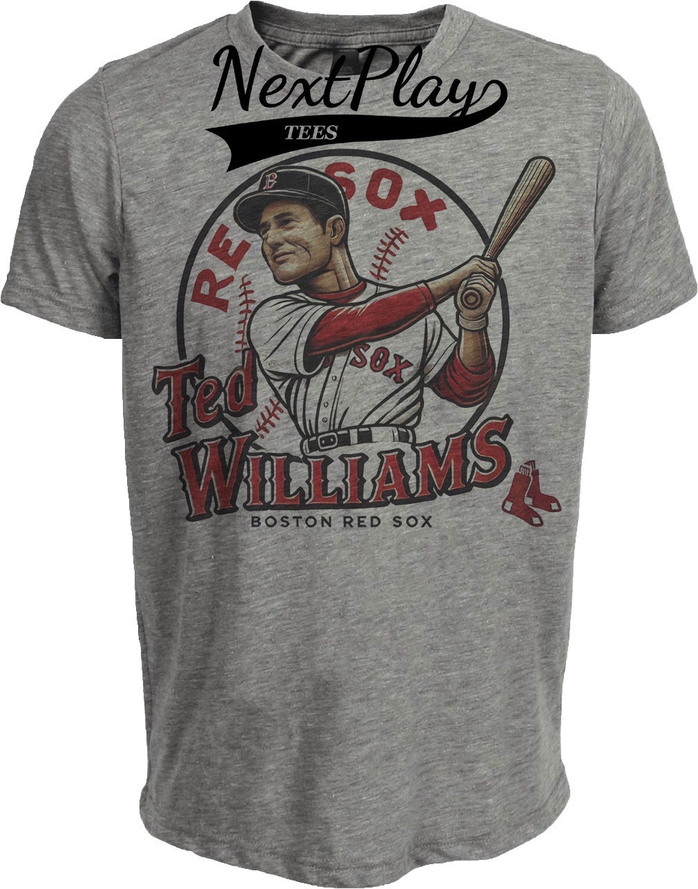 Boston Red Sox Ted Williams Exclusive Retro Baseball 1940 Artwork Heather Gray Sublimated T-Shirt
