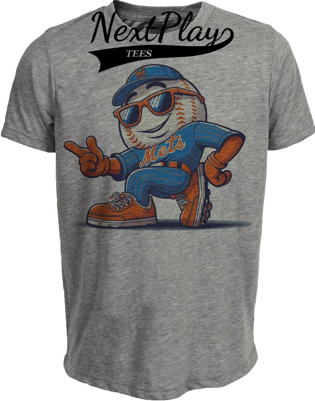 New York Mets Retro Mr. Met Baseball Artwork Heather Gray Sublimated T-Shirt