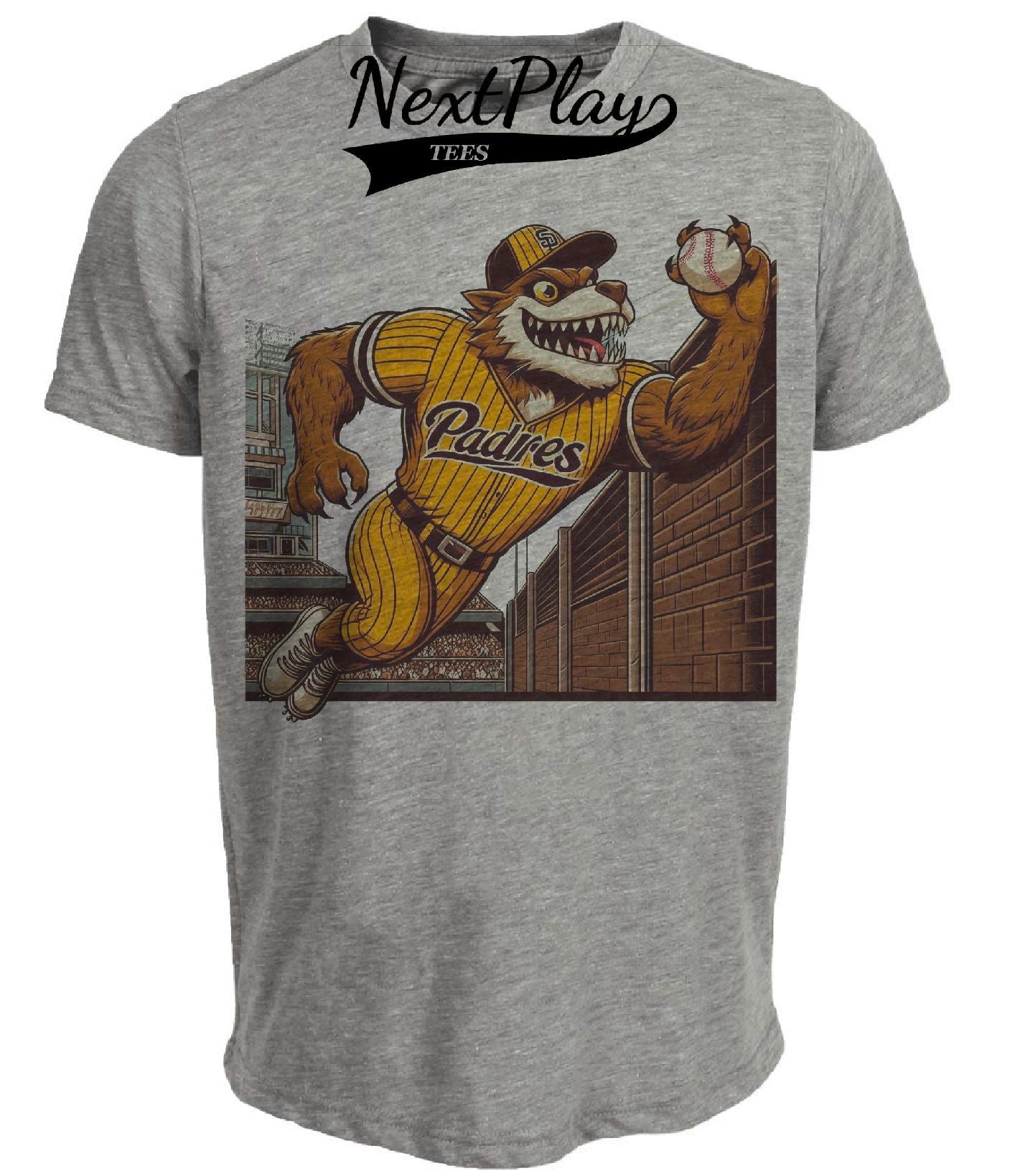San Diego Padres Retro Baseball Mascot Artwork 1989 Heather Gray Sublimated T-Shirt